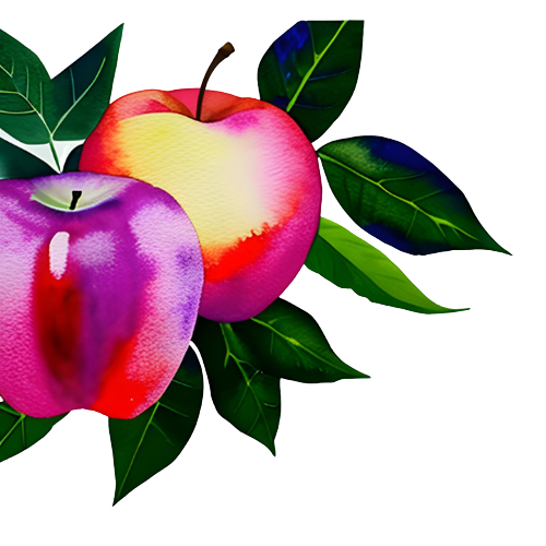 The apples themselves are depicted in a range of captivating colors, from deep crimson and rich green to subtle hints of yellow and orange. The watercolor technique lends a sense of texture and liveliness to the fruits, making them appear almost edible. The interplay of warm and cool tones creates a visually appealing contrast and adds depth to the clipart.